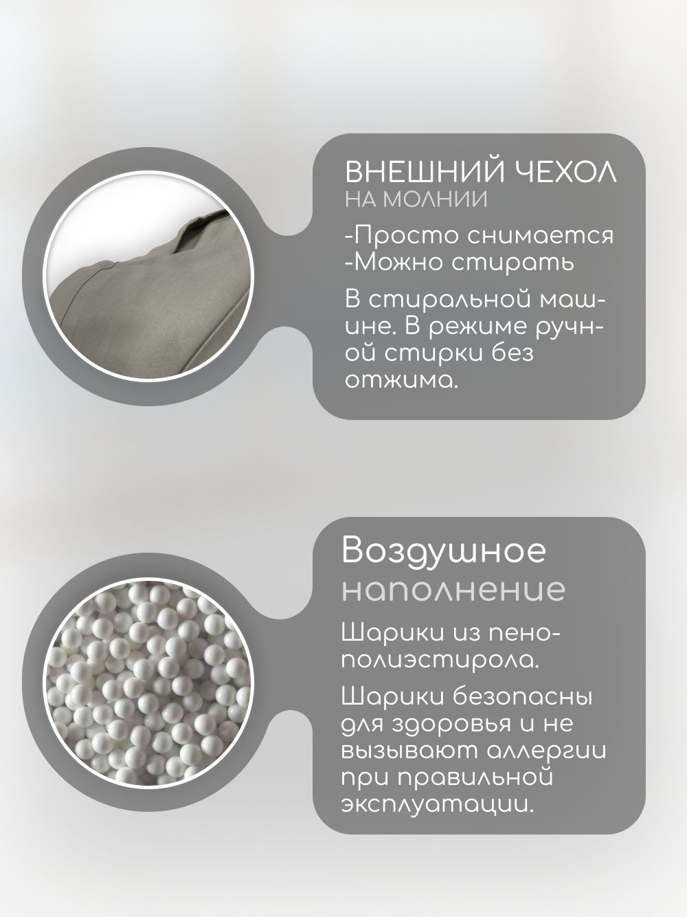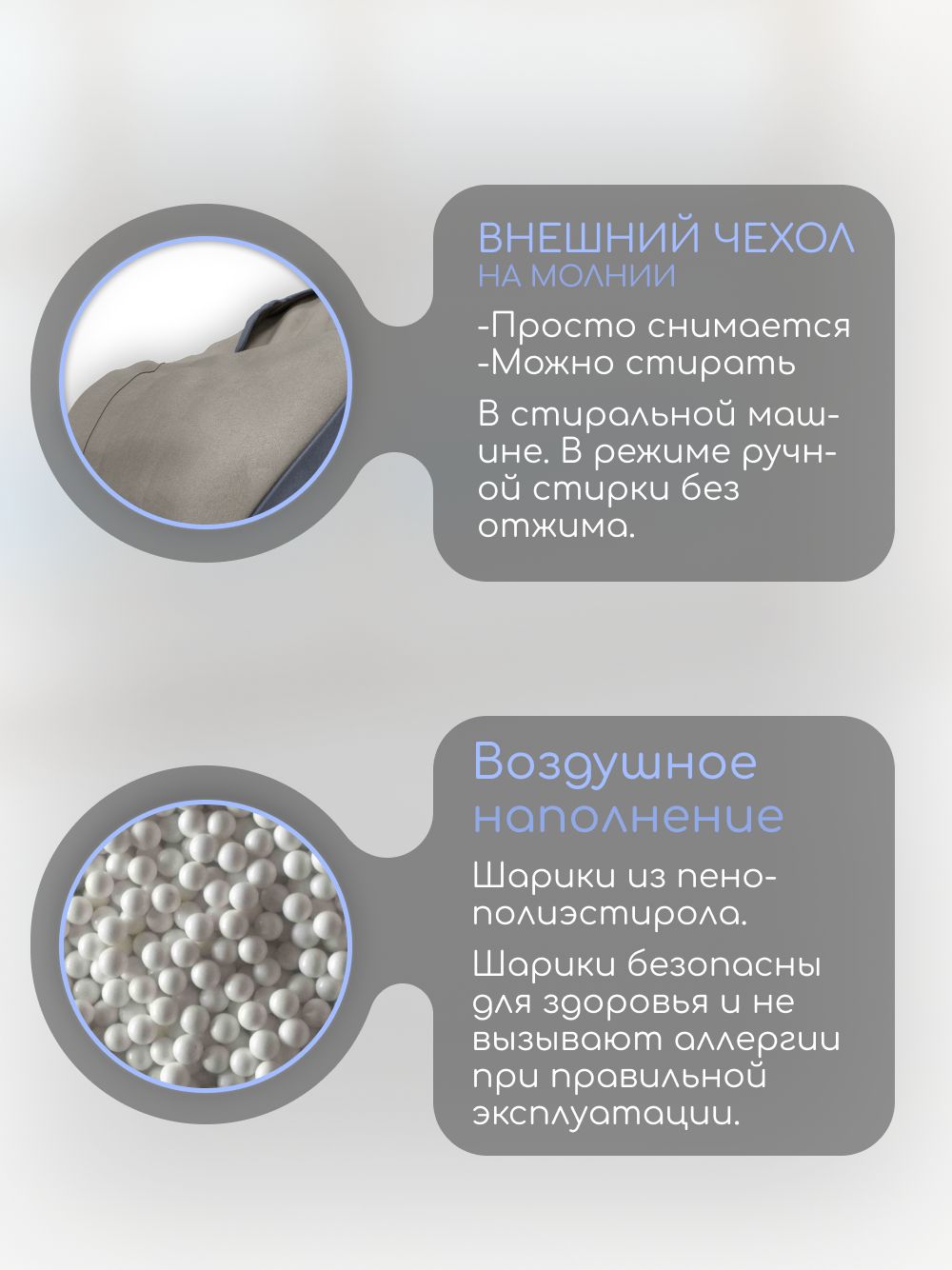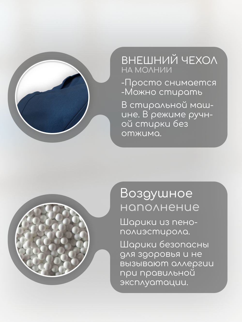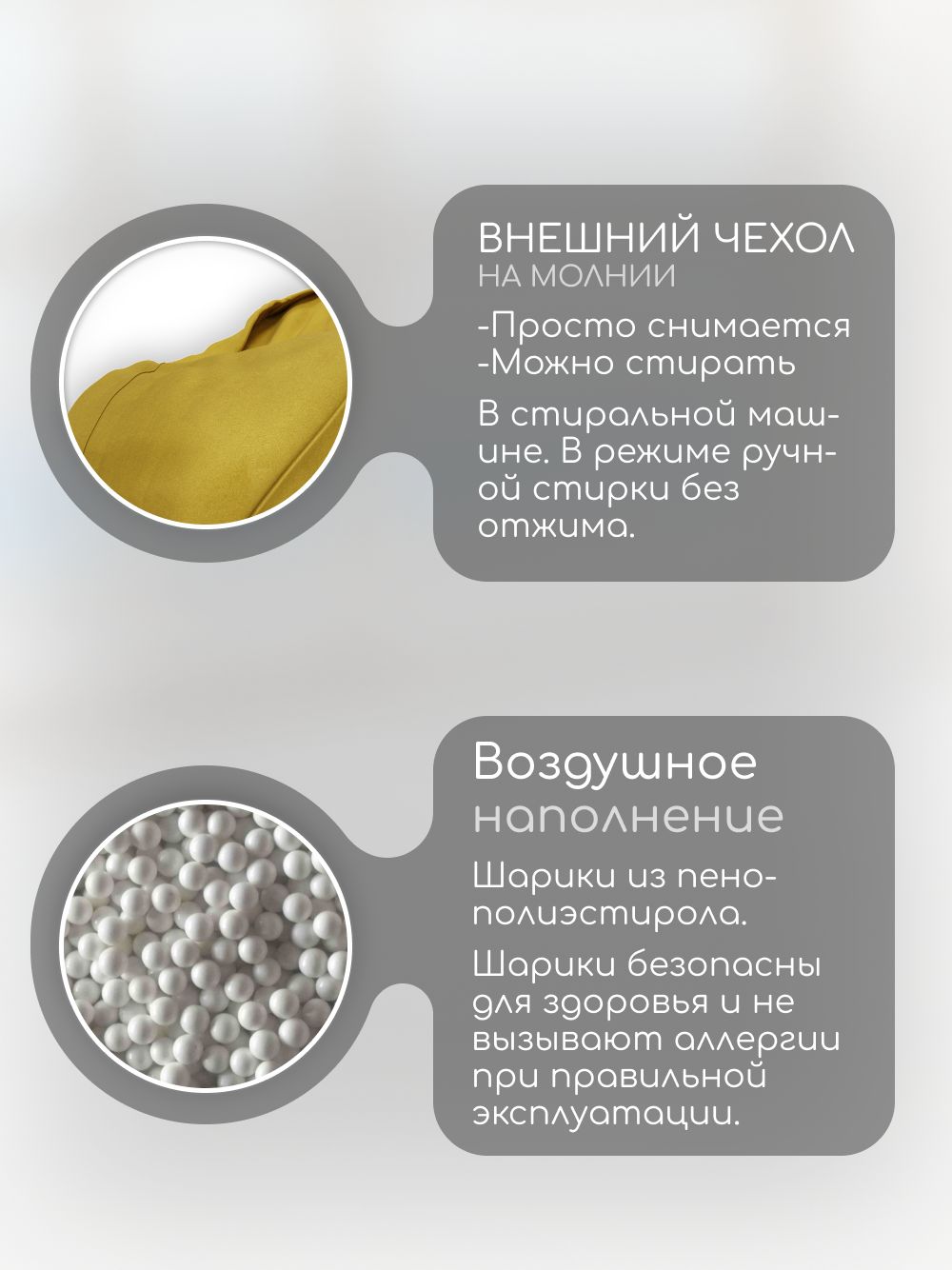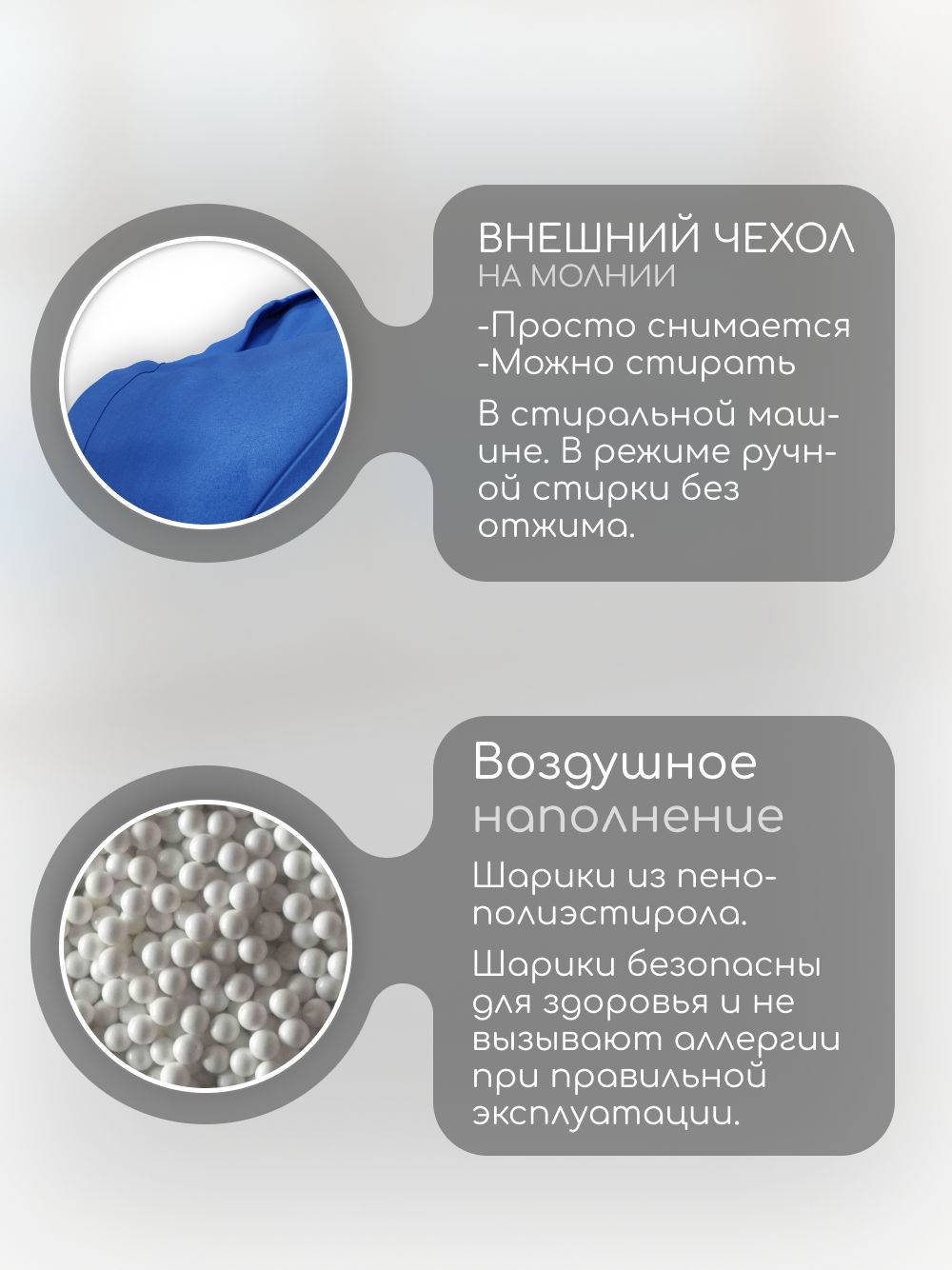 🪑 Кресло-мешок 'Банни' наполняется качественным пенополистиролом, который обеспечивает мягкость и поддержку. Ваш малыш будет чувствовать себя как в объятиях пушистого облака.