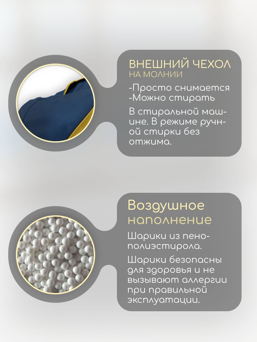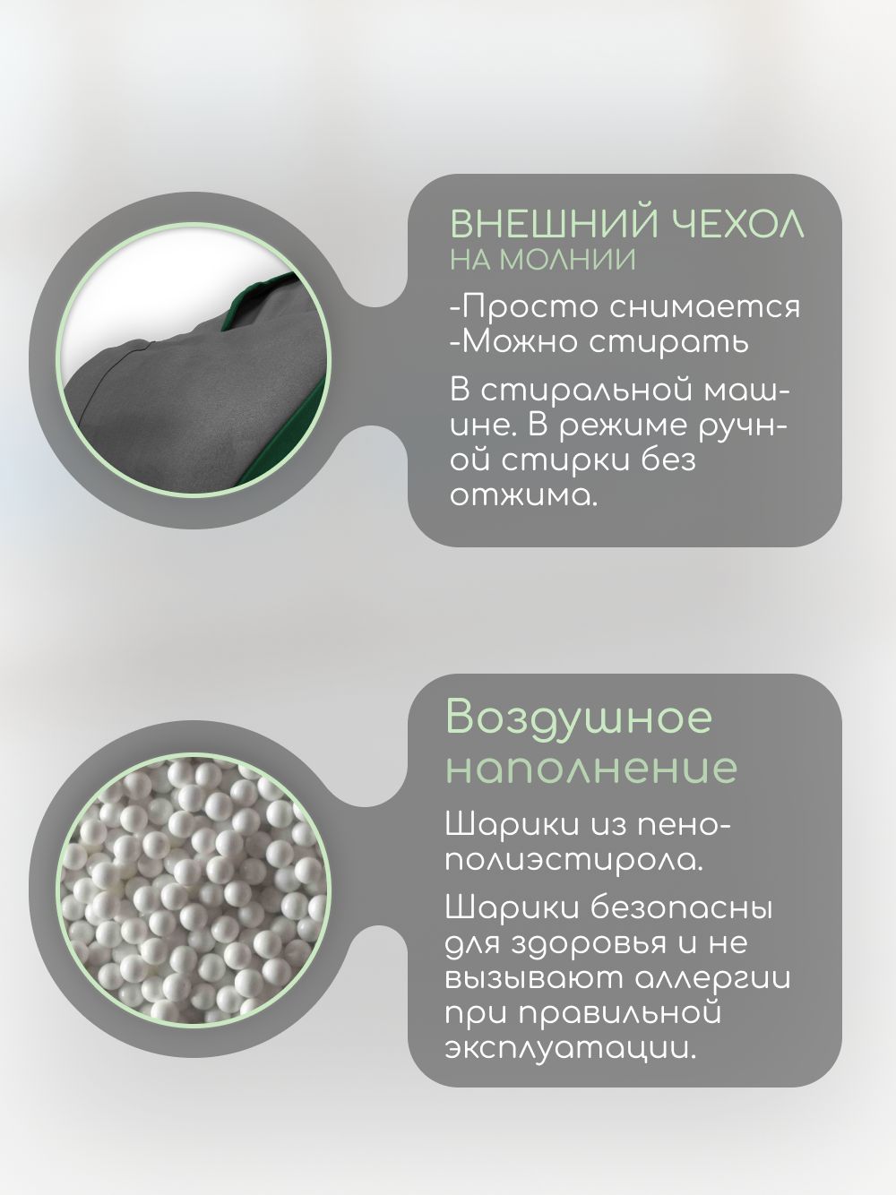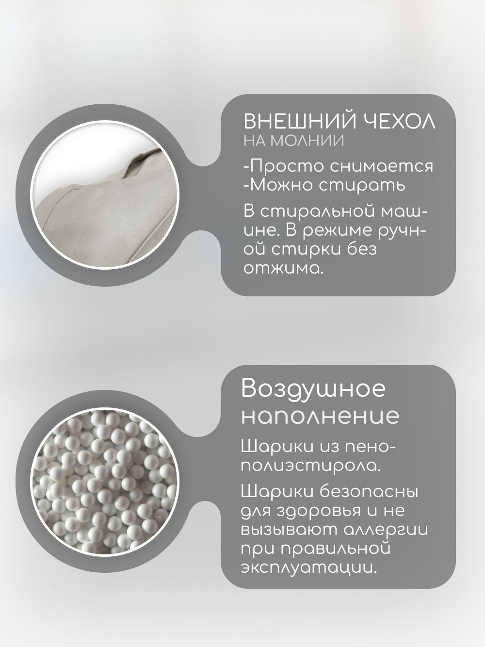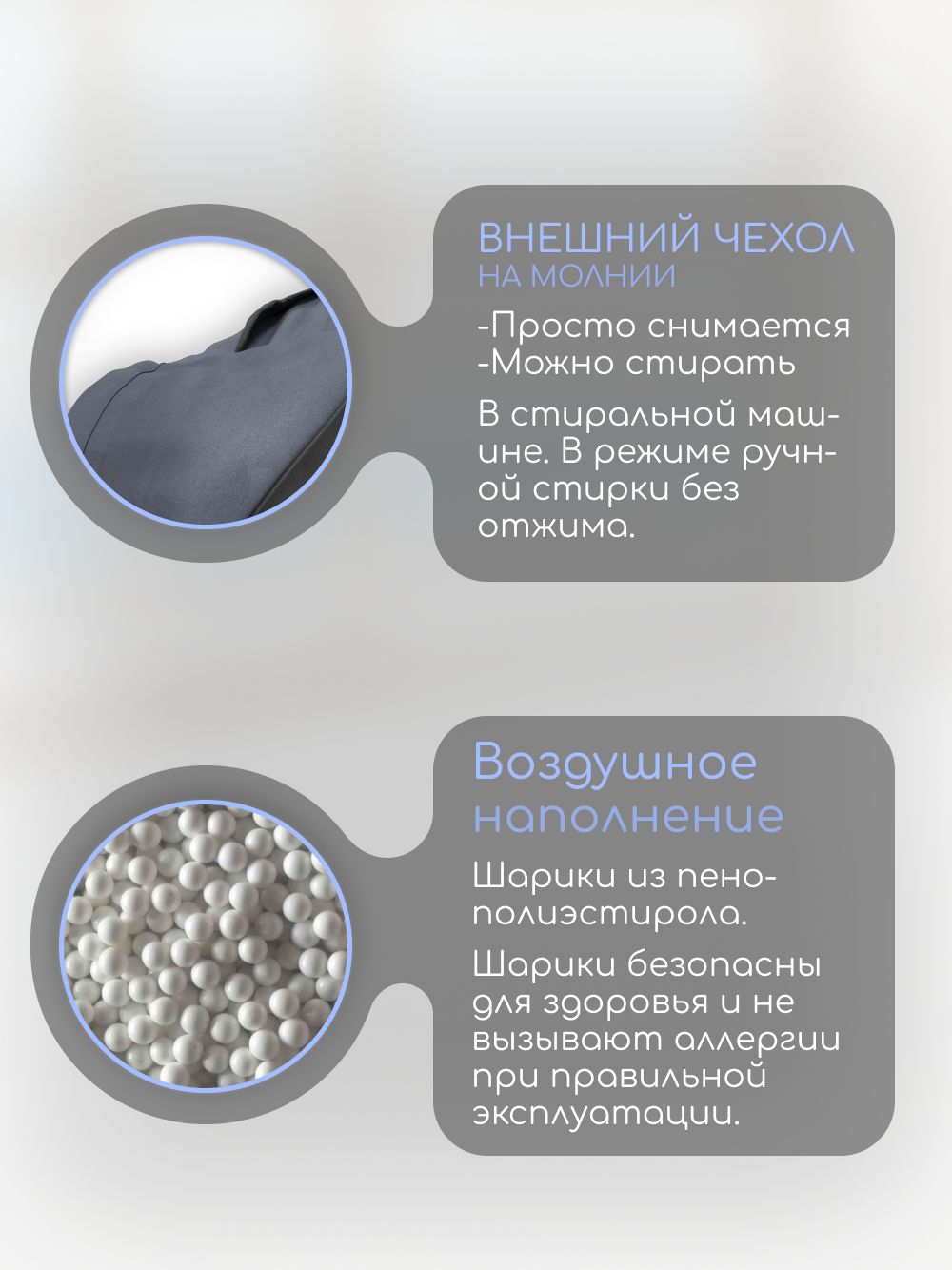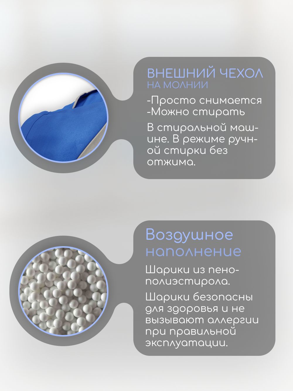 🪑 Кресло-мешок 'Банни' наполняется качественным пенополистиролом, который обеспечивает мягкость и поддержку. Ваш малыш будет чувствовать себя как в объятиях пушистого облака.