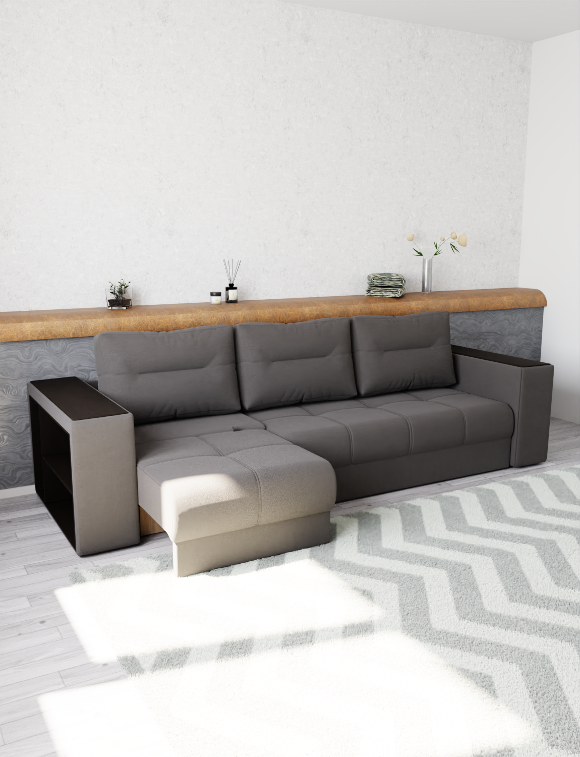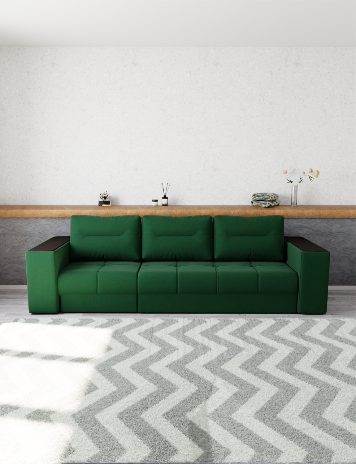 Диван прямой с выдвижной оттоманкой «Барон-2» от бренда YORCOM – ваш комфорт гарантирован! Благодаря искусственному велюру сидение нежное к телу, а независимый пружинный блок обеспечивает устойчивость и долговечность. Роскошные габариты (ширина 295см, глубина 103см) создают дополнительное пространство для отдыха. Россия производит качество! Гарантия 12 месяцев, выдерживает нагрузку до 220кг. Легко выбрать уют благодаря стильному дизайну и оптимальной высоте 80см. Уют вашего дома начинается здесь!