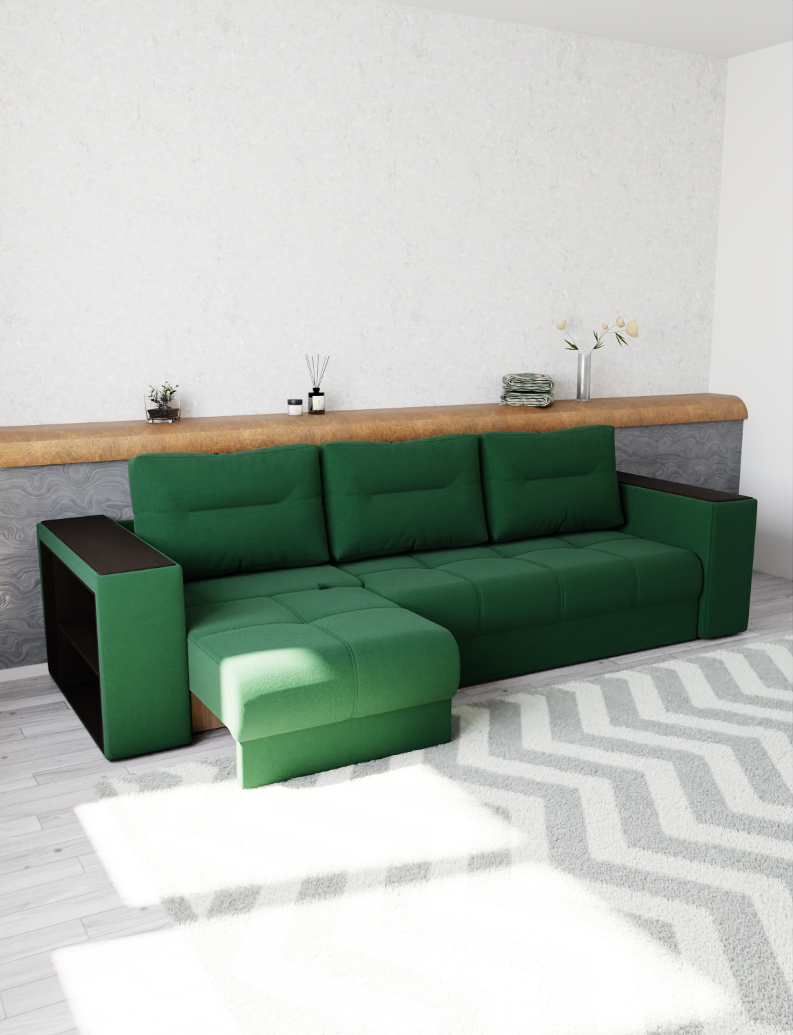 Диван прямой с выдвижной оттоманкой «Барон-2» от бренда YORCOM – ваш комфорт гарантирован! Благодаря искусственному велюру сидение нежное к телу, а независимый пружинный блок обеспечивает устойчивость и долговечность. Роскошные габариты (ширина 295см, глубина 103см) создают дополнительное пространство для отдыха. Россия производит качество! Гарантия 12 месяцев, выдерживает нагрузку до 220кг. Легко выбрать уют благодаря стильному дизайну и оптимальной высоте 80см. Уют вашего дома начинается здесь!