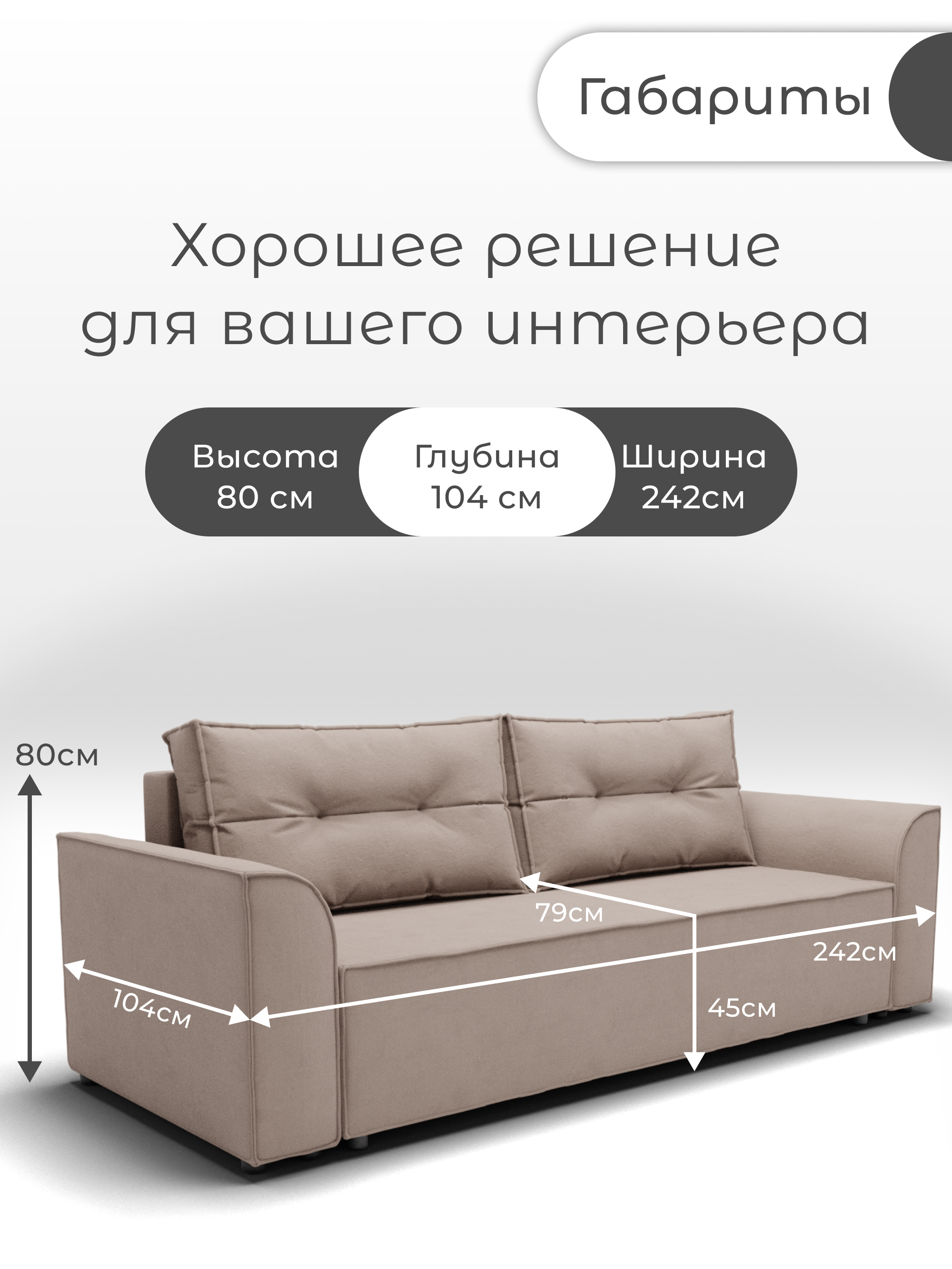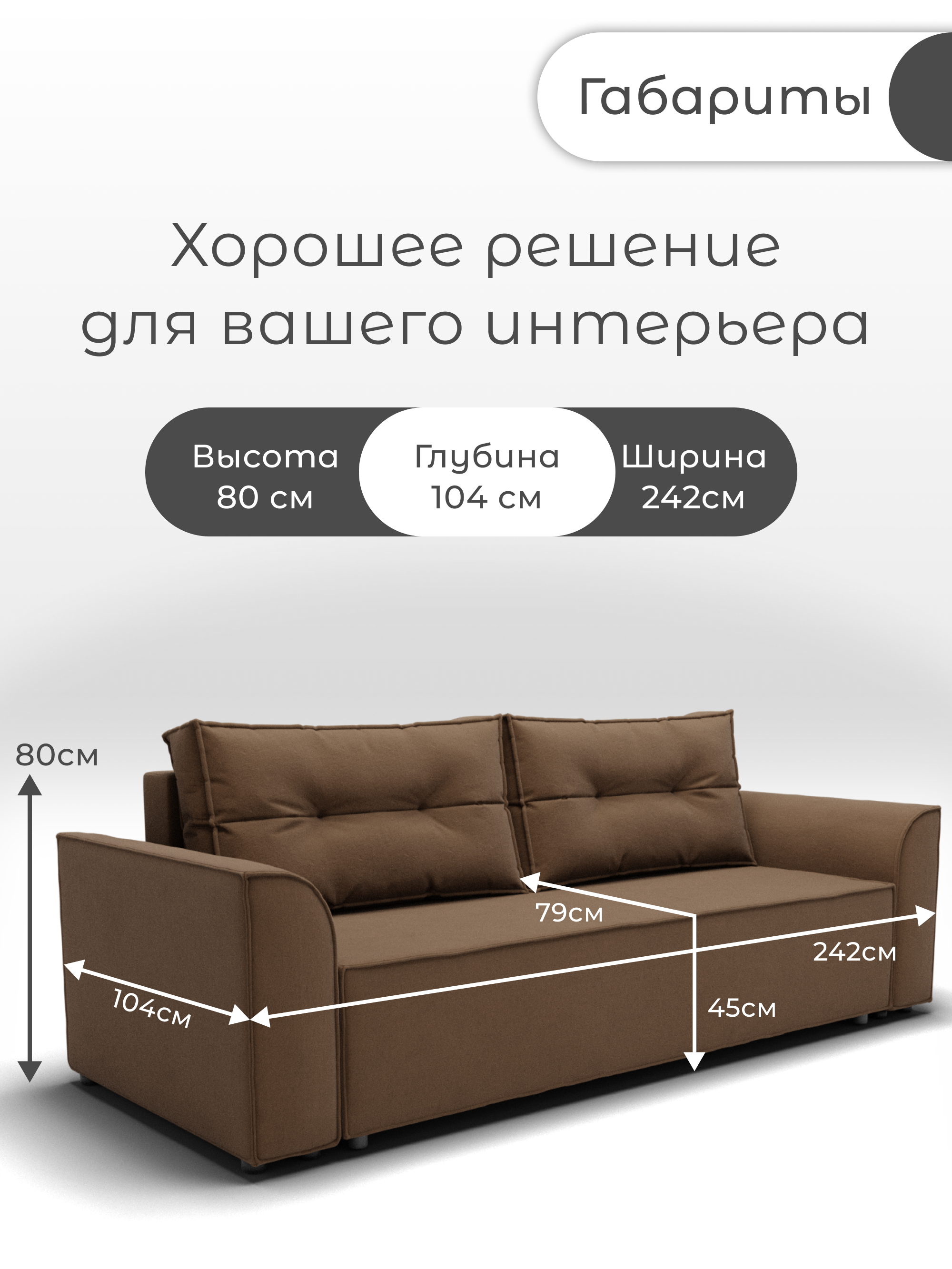 Диван прямой «Босс-1» от бренда YORCOM – ваш комфорт гарантирован! Благодаря искусственному велюру сидение нежное к телу, а независимый пружинный блок обеспечивает устойчивость и долговечность. Роскошные габариты (ширина 242см, глубина 104см) создают дополнительное пространство для отдыха. Россия производит качество! Гарантия 12 месяцев, выдерживает нагрузку до 220кг. Легко выбрать уют благодаря стильному дизайну и оптимальной высоте 80см. Уют вашего дома начинается здесь!