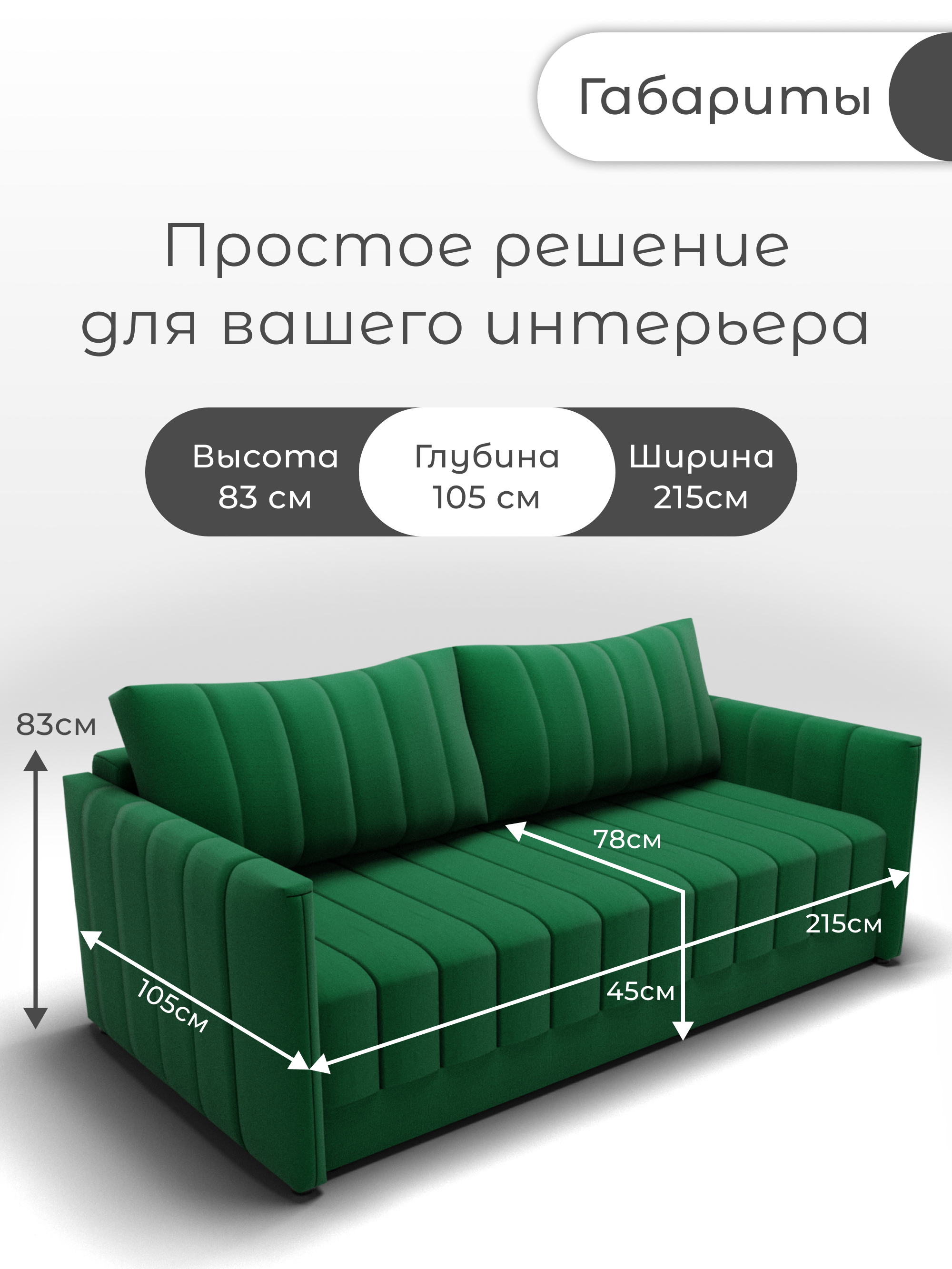 Диван «Поло» от бренда YORCOM – ваш комфорт гарантирован! Благодаря искусственному велюру сидение нежное к телу, а пенополистирольный наполнитель и независимый пружинный блок обеспечивают устойчивость и долговечность. Габариты (ширина 215 см, глубина 105 см) создают дополнительное пространство для отдыха. Россия производит качество! Гарантия 12 месяцев, выдерживает нагрузку до 270 кг. Легко выбрать уют благодаря стильному дизайну и оптимальной высоте 83 см. Уют вашего дома начинается здесь!