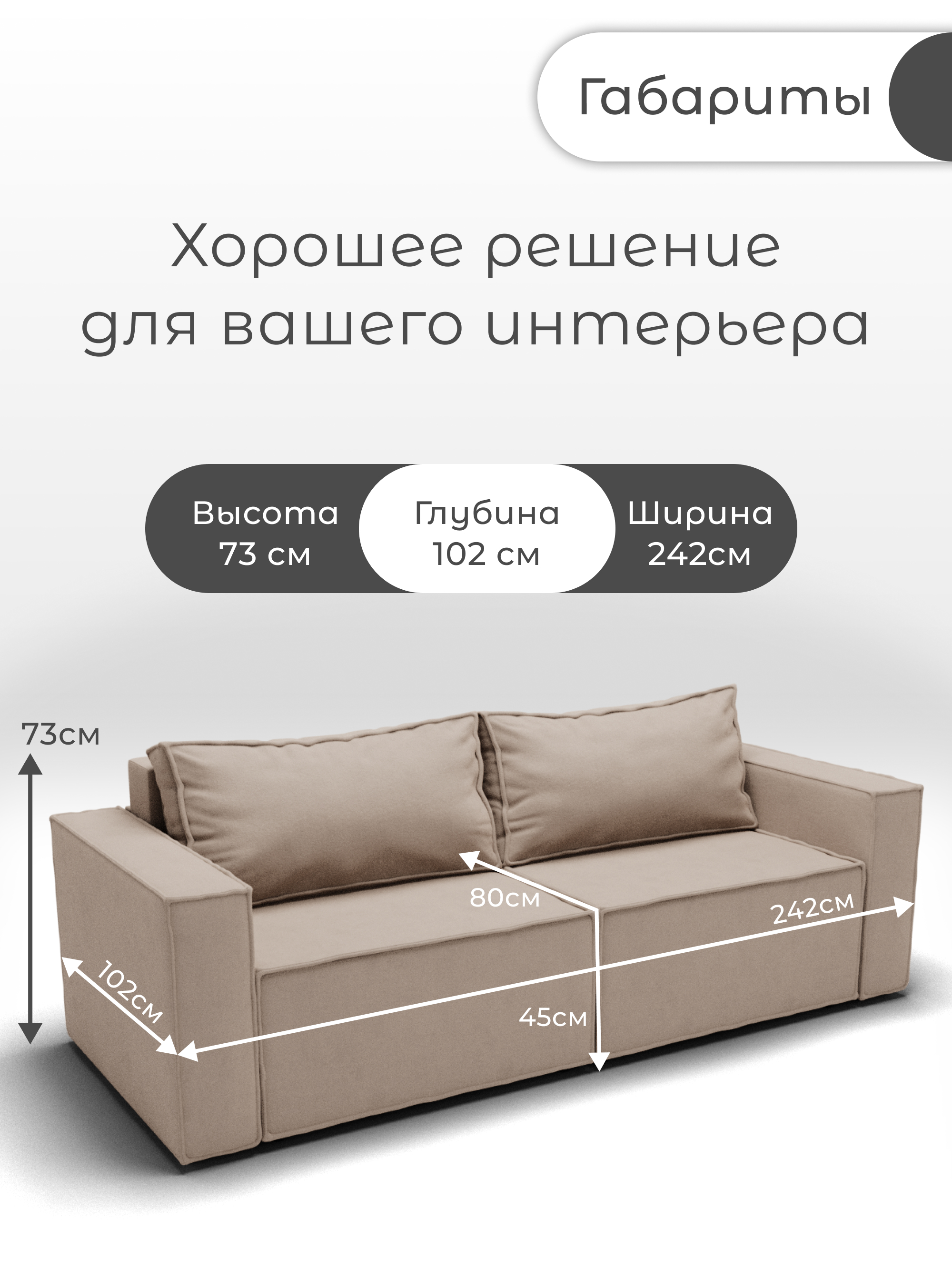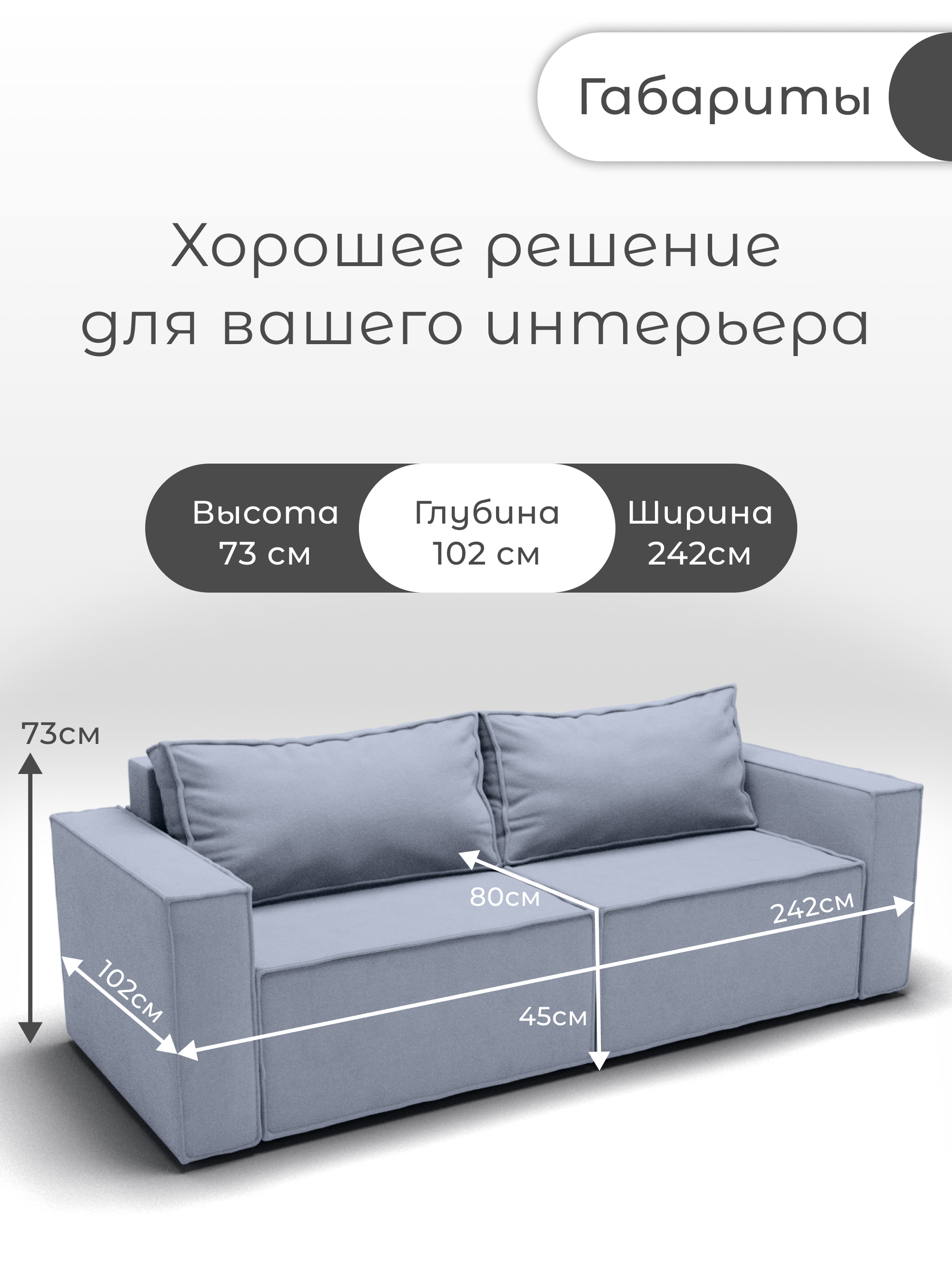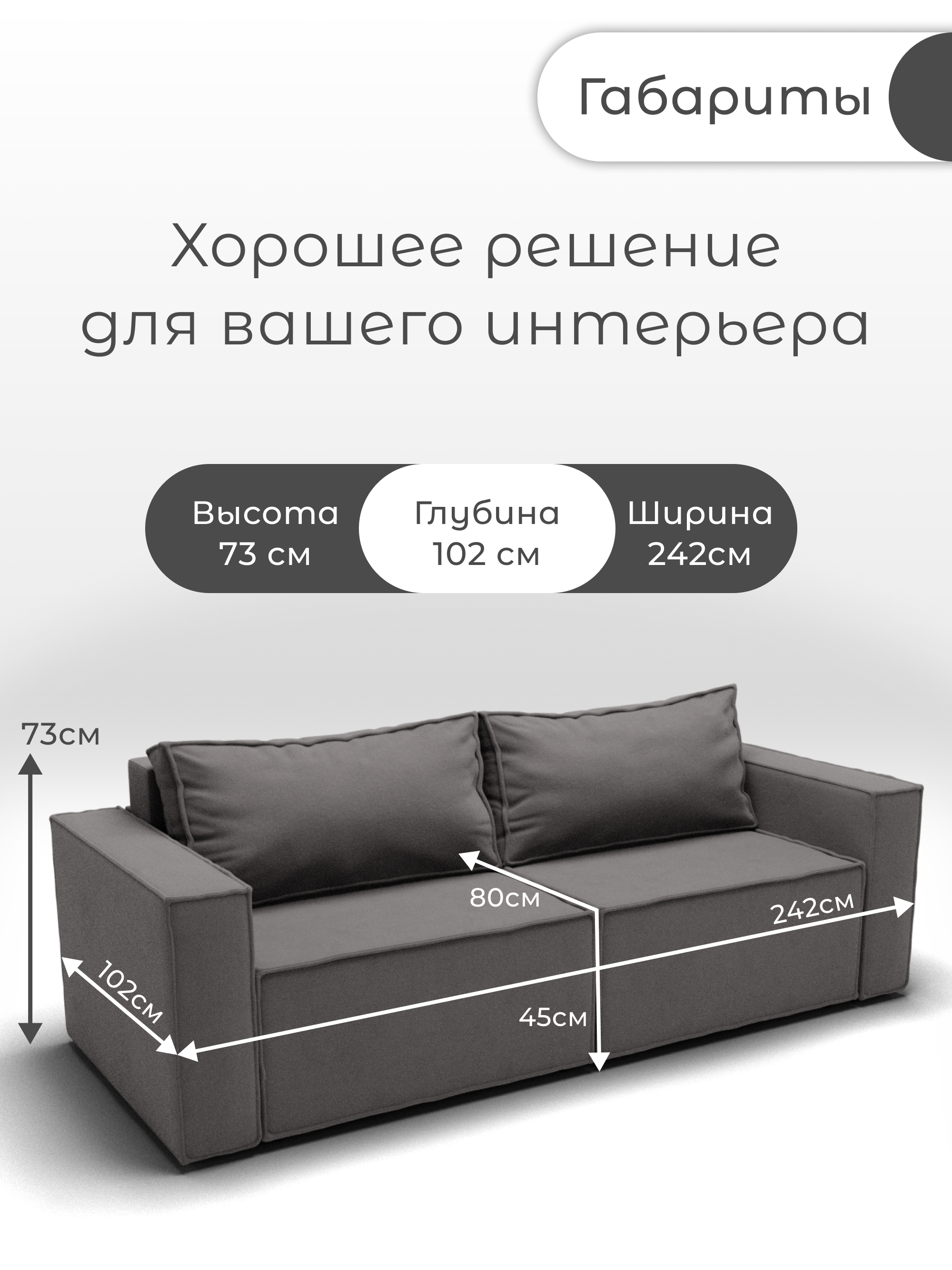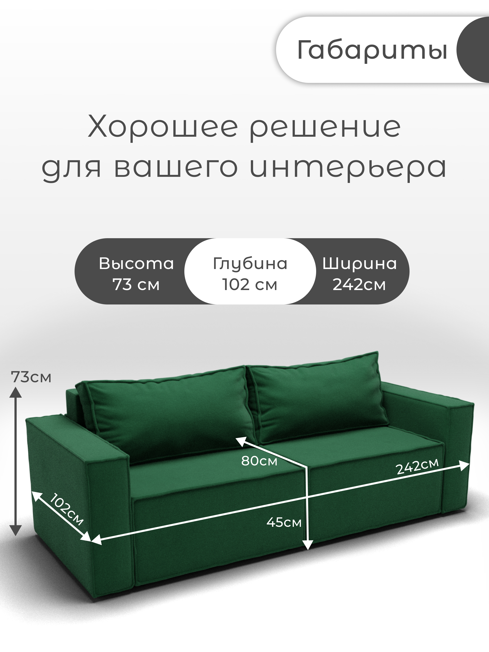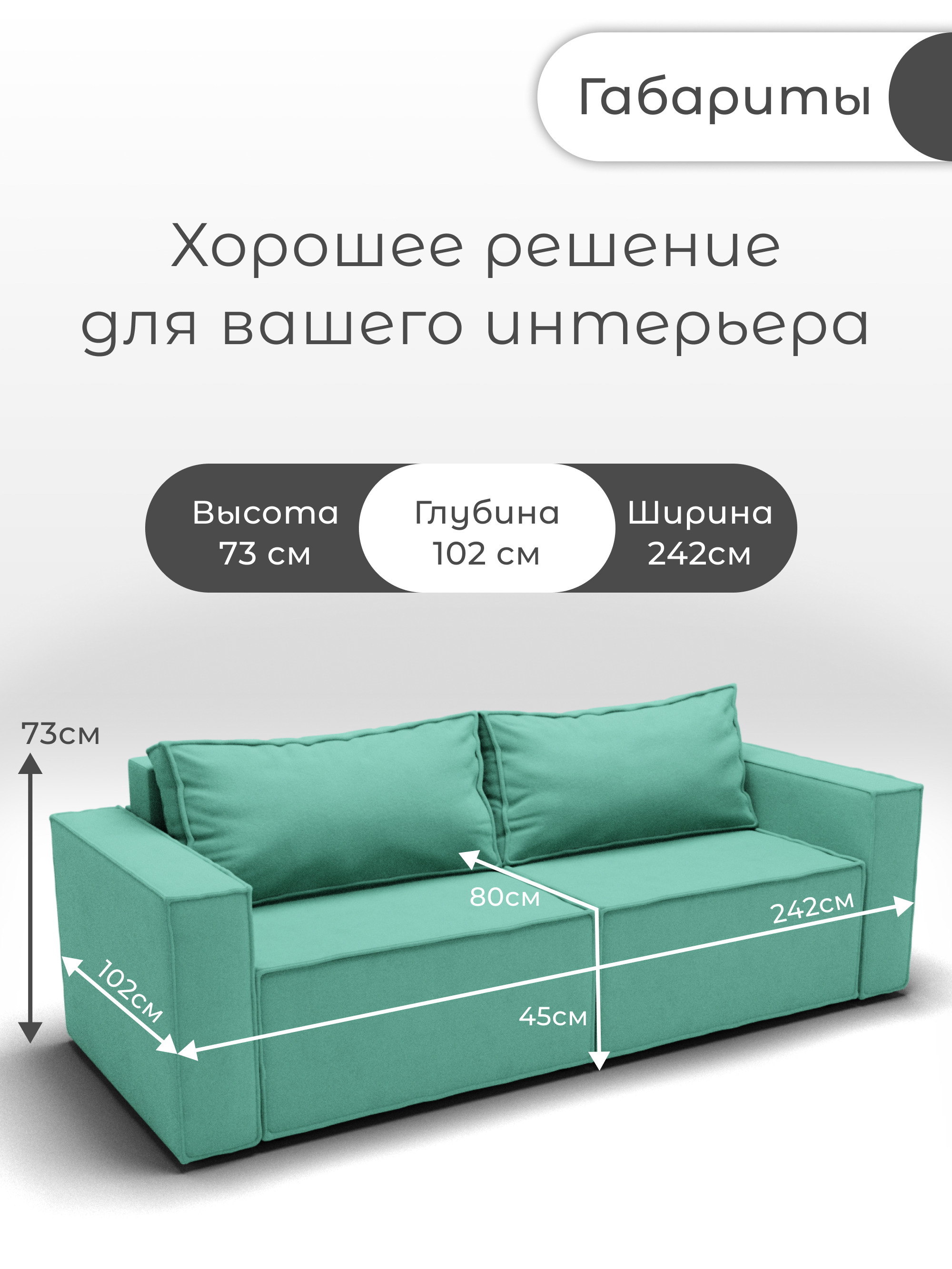 Диван прямой «Рашт-1» от бренда YORCOM – ваш комфорт гарантирован! Благодаря искусственному велюру сидение нежное к телу, а независимый пружинный блок обеспечивает устойчивость и долговечность. Роскошные габариты (ширина 242см, глубина 102см) создают дополнительное пространство для отдыха. Россия производит качество! Гарантия 12 месяцев, выдерживает нагрузку до 220кг. Легко выбрать уют благодаря стильному дизайну и оптимальной высоте 73см. Уют вашего дома начинается здесь!