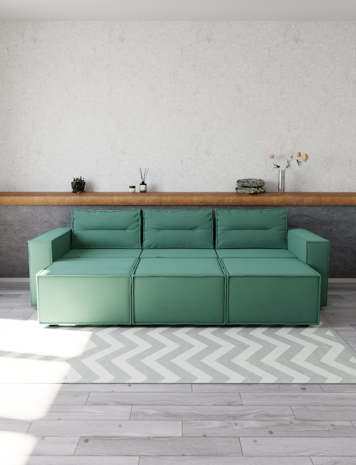 Диван прямой c выдвижной оттоманкой «Рашт-2» от бренда YORCOM – ваш комфорт гарантирован! Благодаря искусственному велюру сидение нежное к телу, а независимый пружинный блок обеспечивает устойчивость и долговечность. Роскошные габариты (ширина 320см, глубина 106см) создают дополнительное пространство для отдыха. Россия производит качество! Гарантия 12 месяцев, выдерживает нагрузку до 220кг. Легко выбрать уют благодаря стильному дизайну и оптимальной высоте 75см. Уют вашего дома начинается здесь!