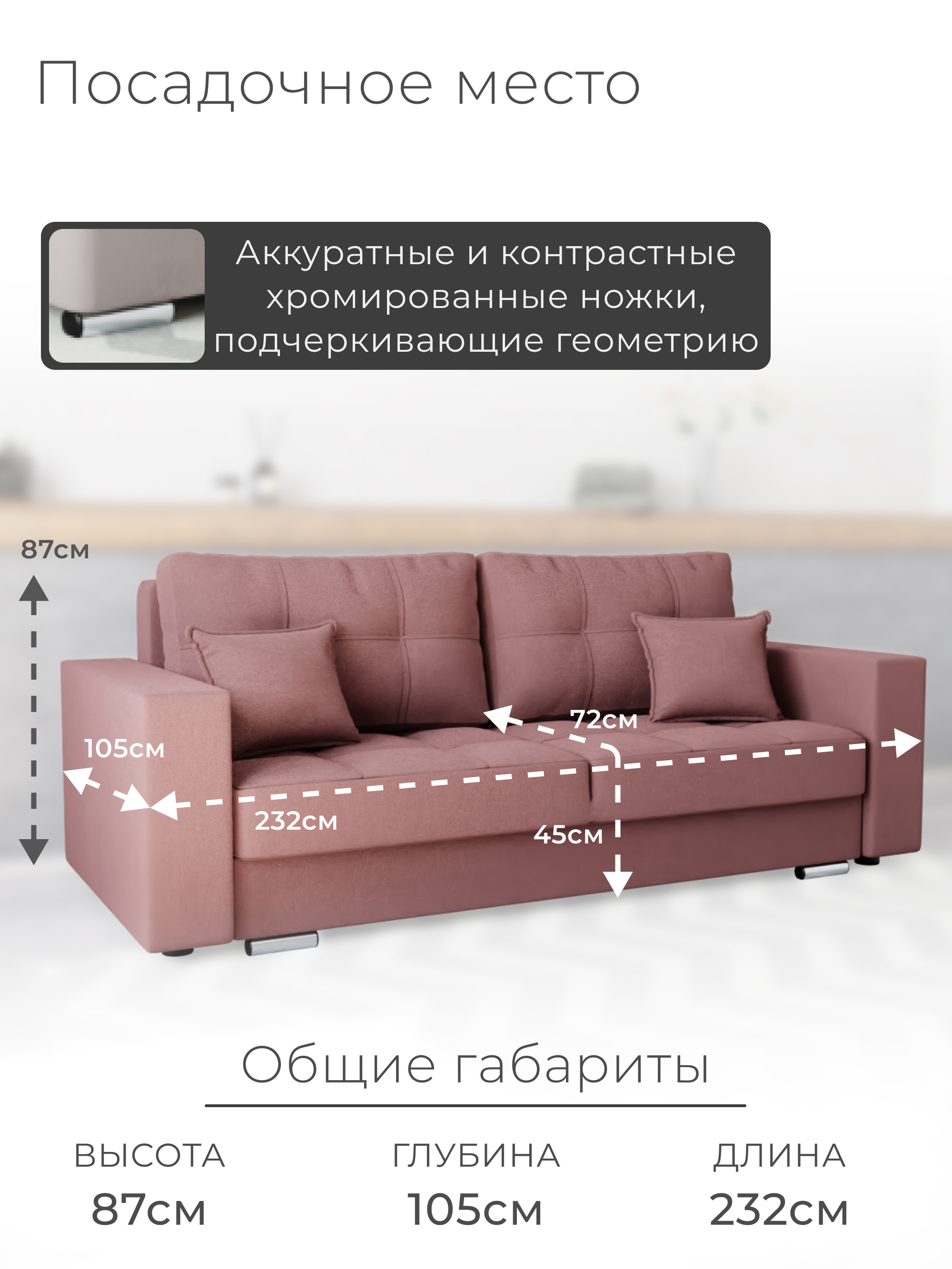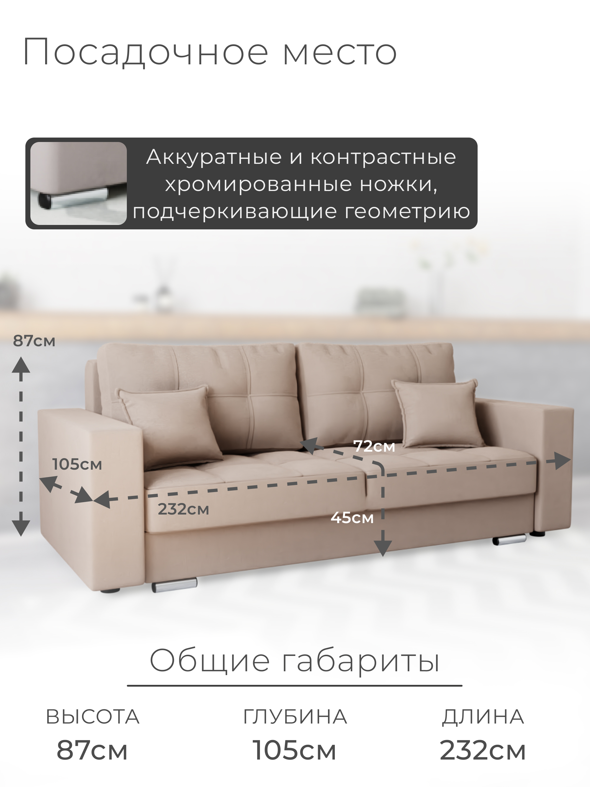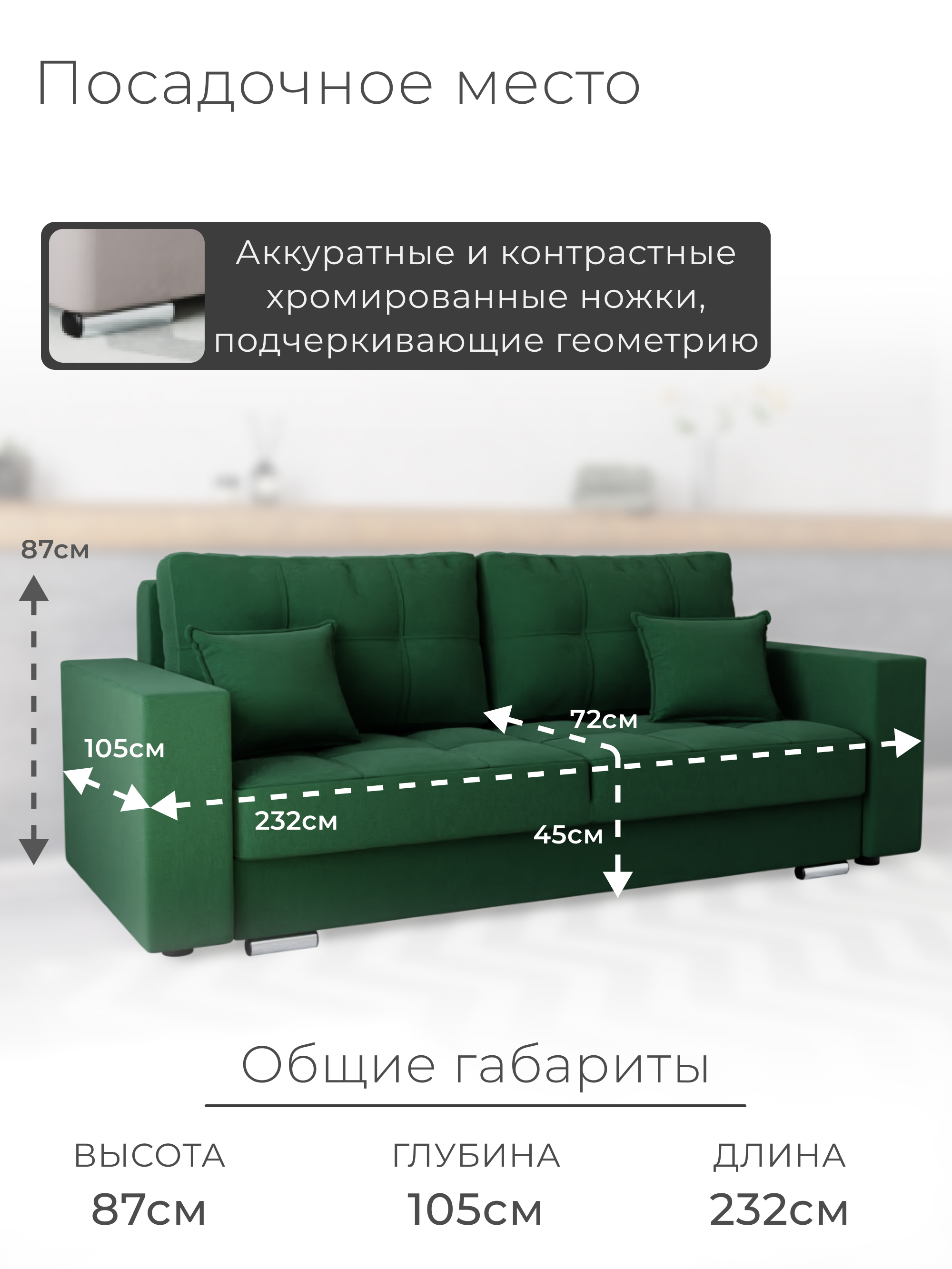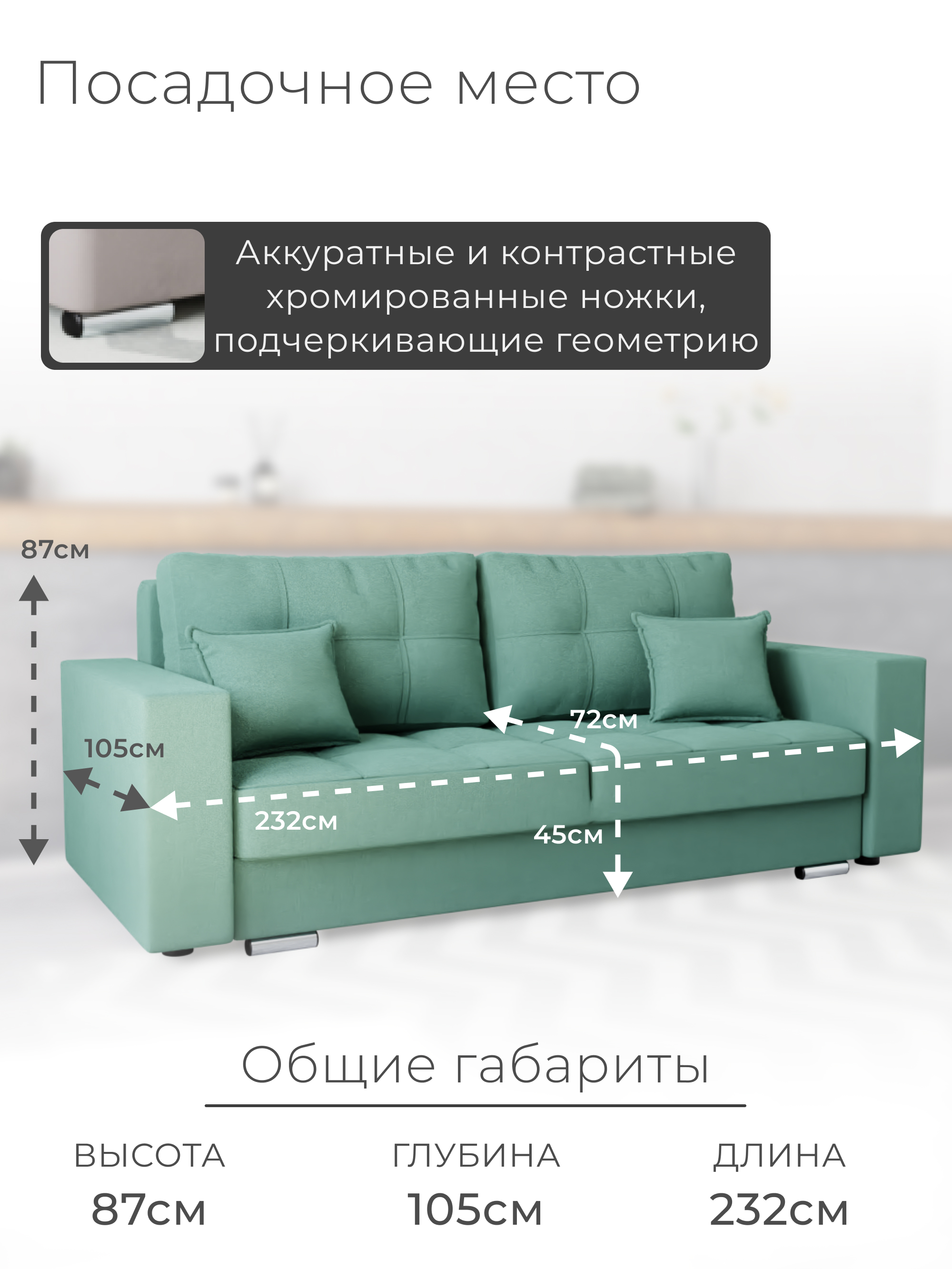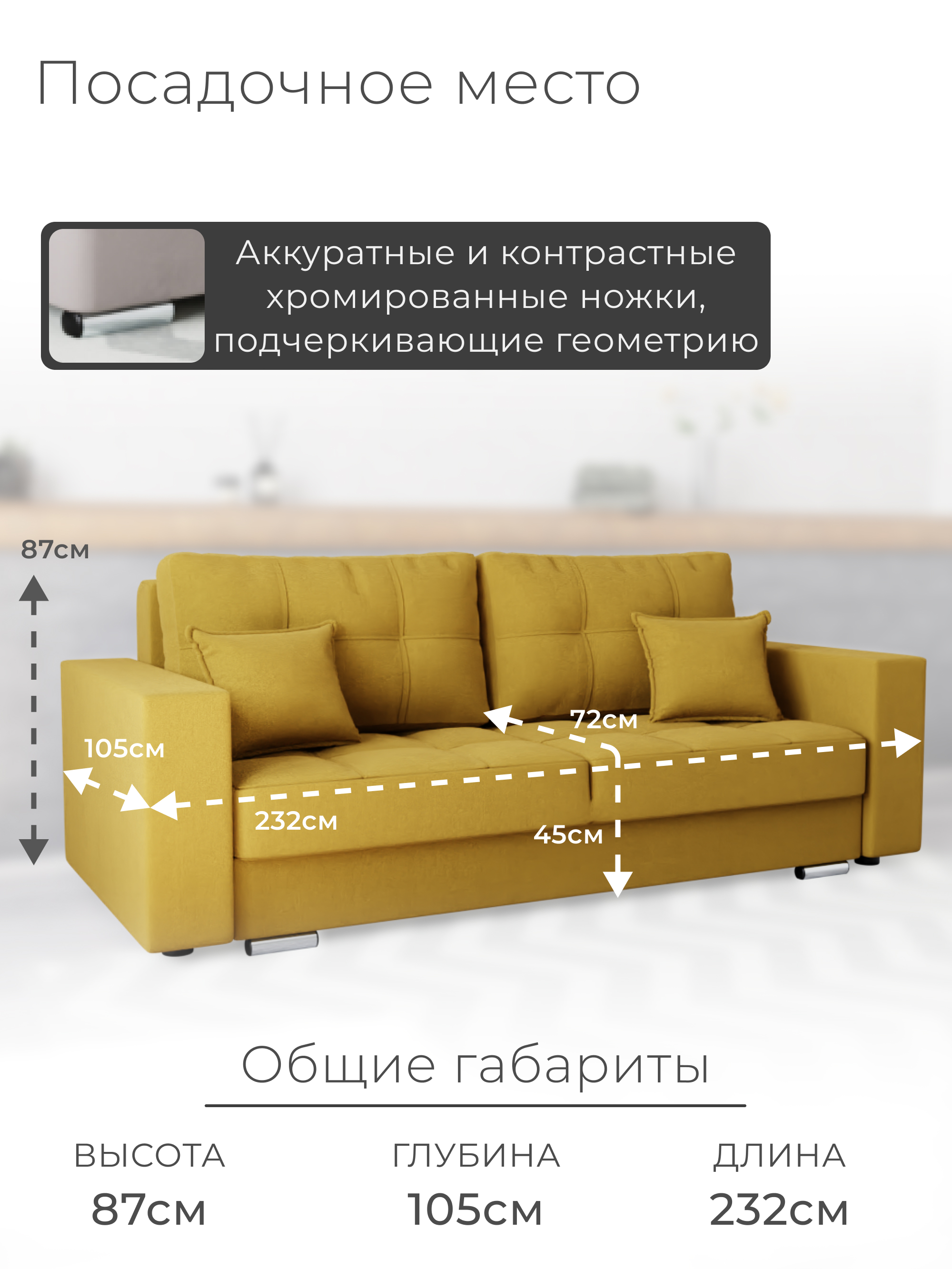 Диван «Талисма-1» от бренда YORCOM – ваш комфорт гарантирован! Благодаря искусственному велюру сидение нежное к телу, а пенополистирольный наполнитель обеспечивает устойчивость и долговечность. Габариты (ширина 232 см, глубина 105 см) создают дополнительное пространство для отдыха. Россия производит качество! Гарантия 12 месяцев, выдерживает нагрузку до 270 кг. Легко выбрать уют благодаря стильному дизайну и оптимальной высоте 87 см. Уют вашего дома начинается здесь!
