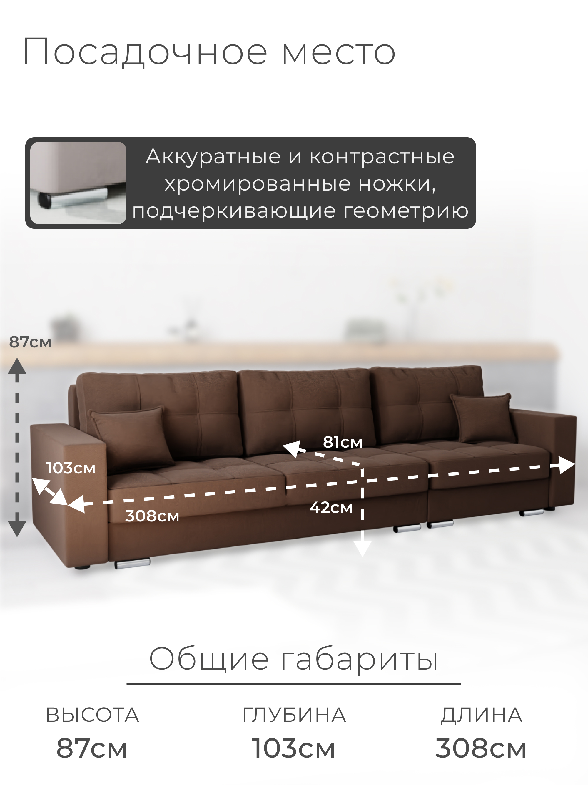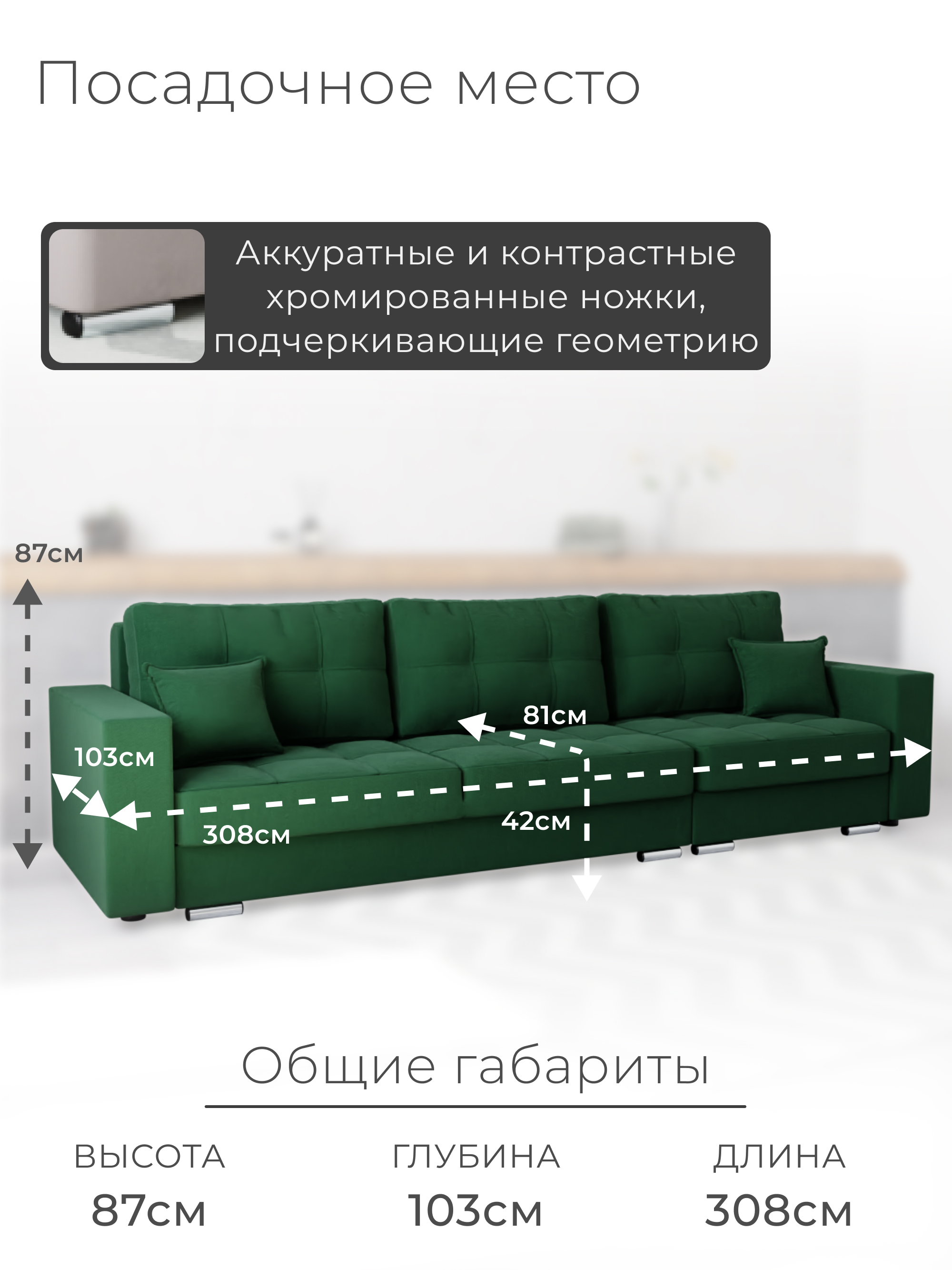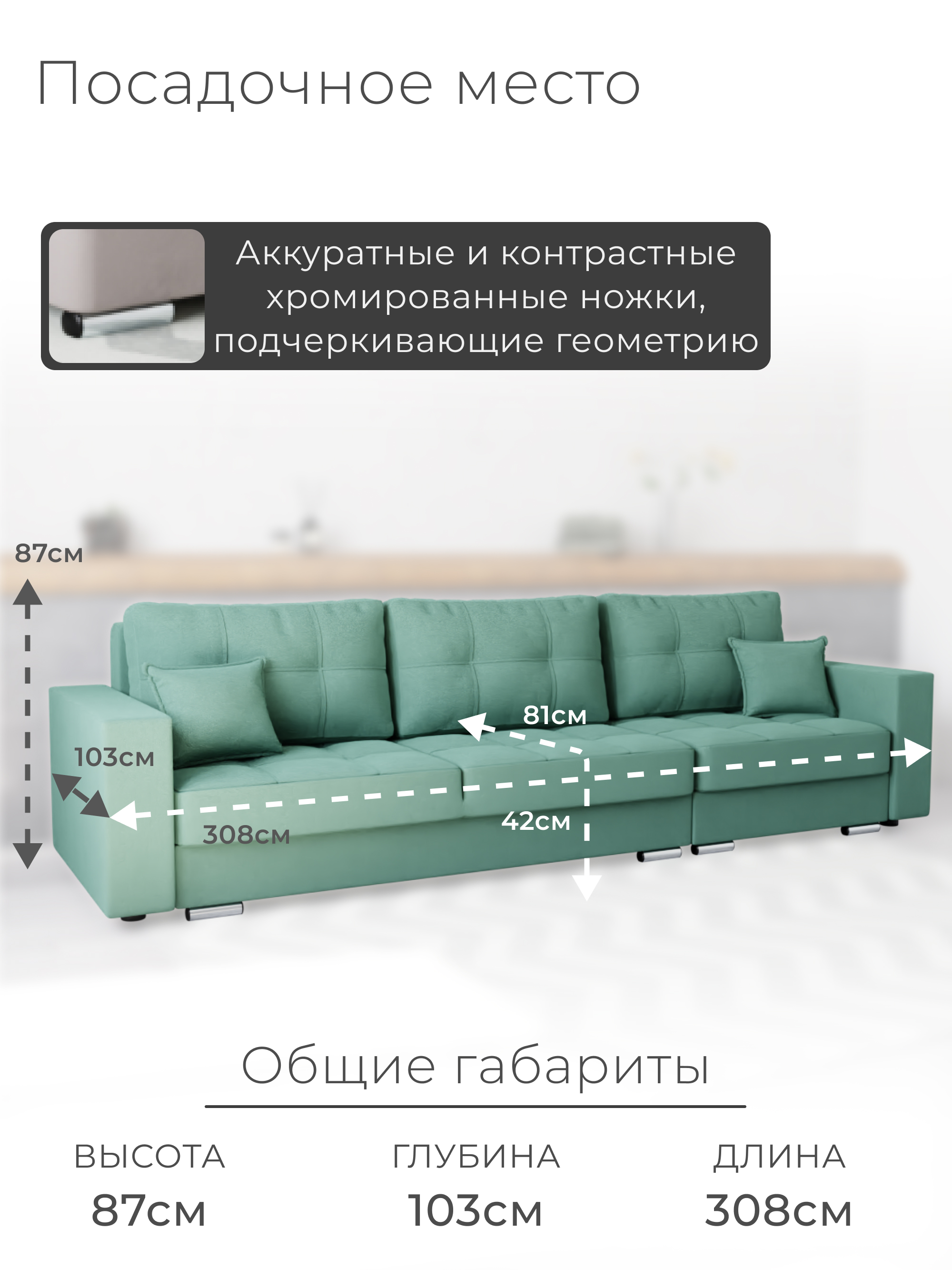Диван «Талисма-2» с выдвижной оттоманкой от бренда YORCOM – ваш комфорт гарантирован! Благодаря искусственному велюру сидение нежное к телу, а пенополистирольный наполнитель обеспечивает устойчивость и долговечность. Габариты (ширина 308 см, глубина 103 см) создают дополнительное пространство для отдыха. Россия производит качество! Гарантия 12 месяцев, выдерживает нагрузку до 270 кг. Легко выбрать уют благодаря стильному дизайну и оптимальной высоте 87 см. Уют вашего дома начинается здесь!