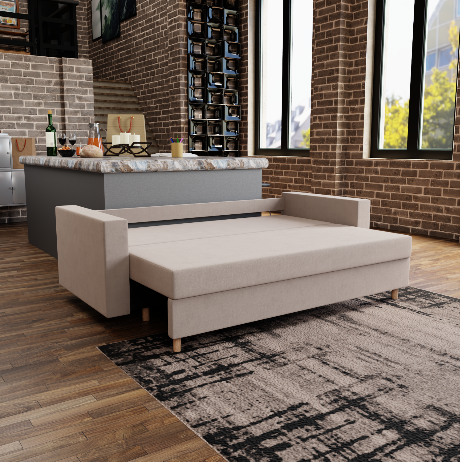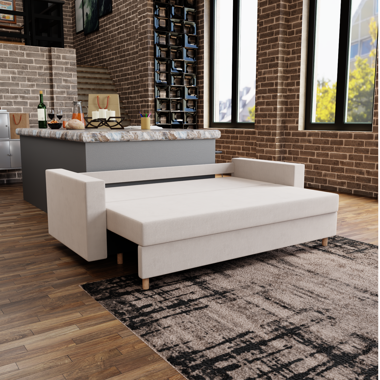 Особый комфорт придает продуманная конструкция механизма трансформации – легко превращается в полноценную кровать одним движением руки!